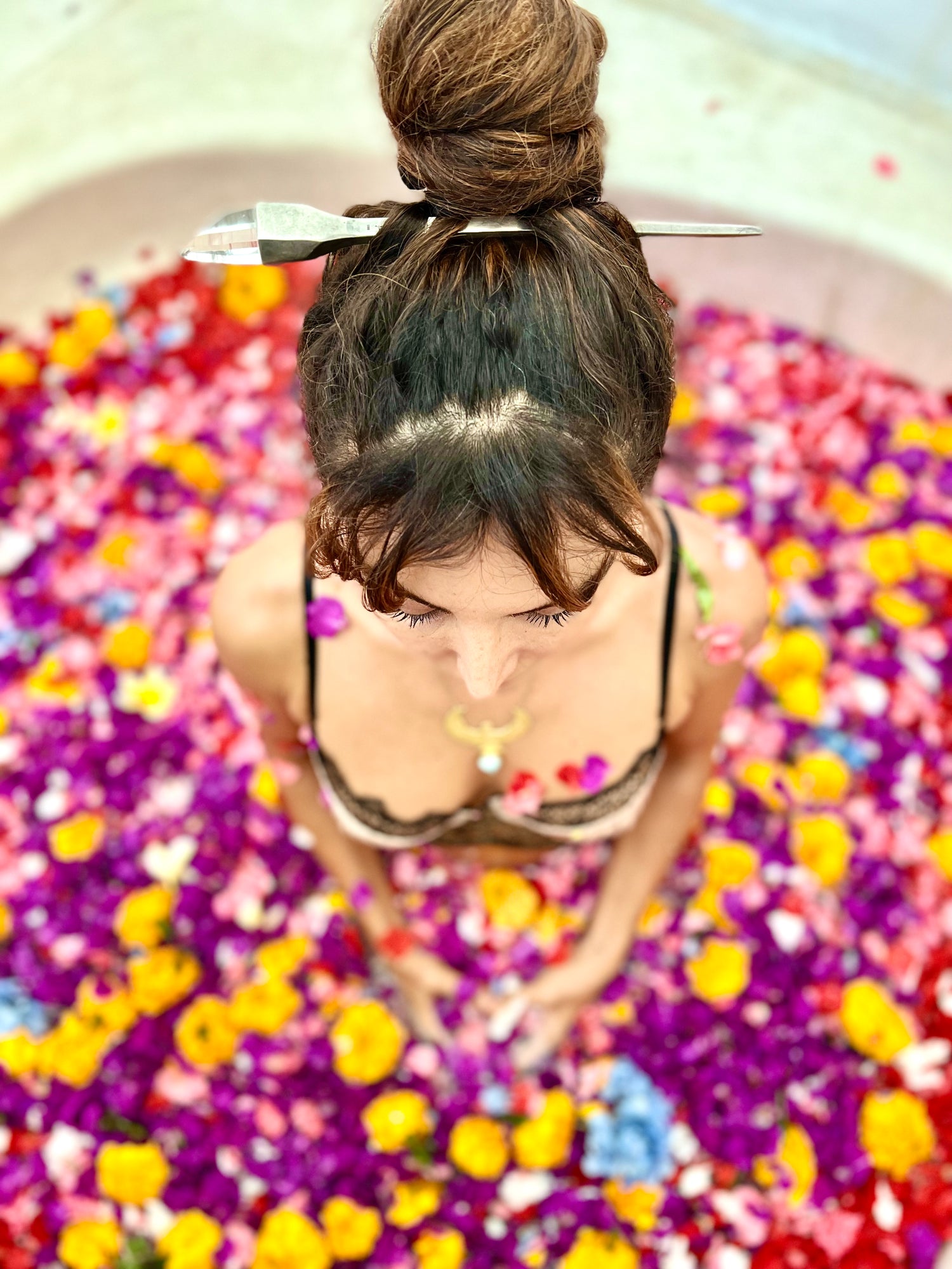 Have a bathub yearning to be photographed with you bathing with flower, scent, mantras?