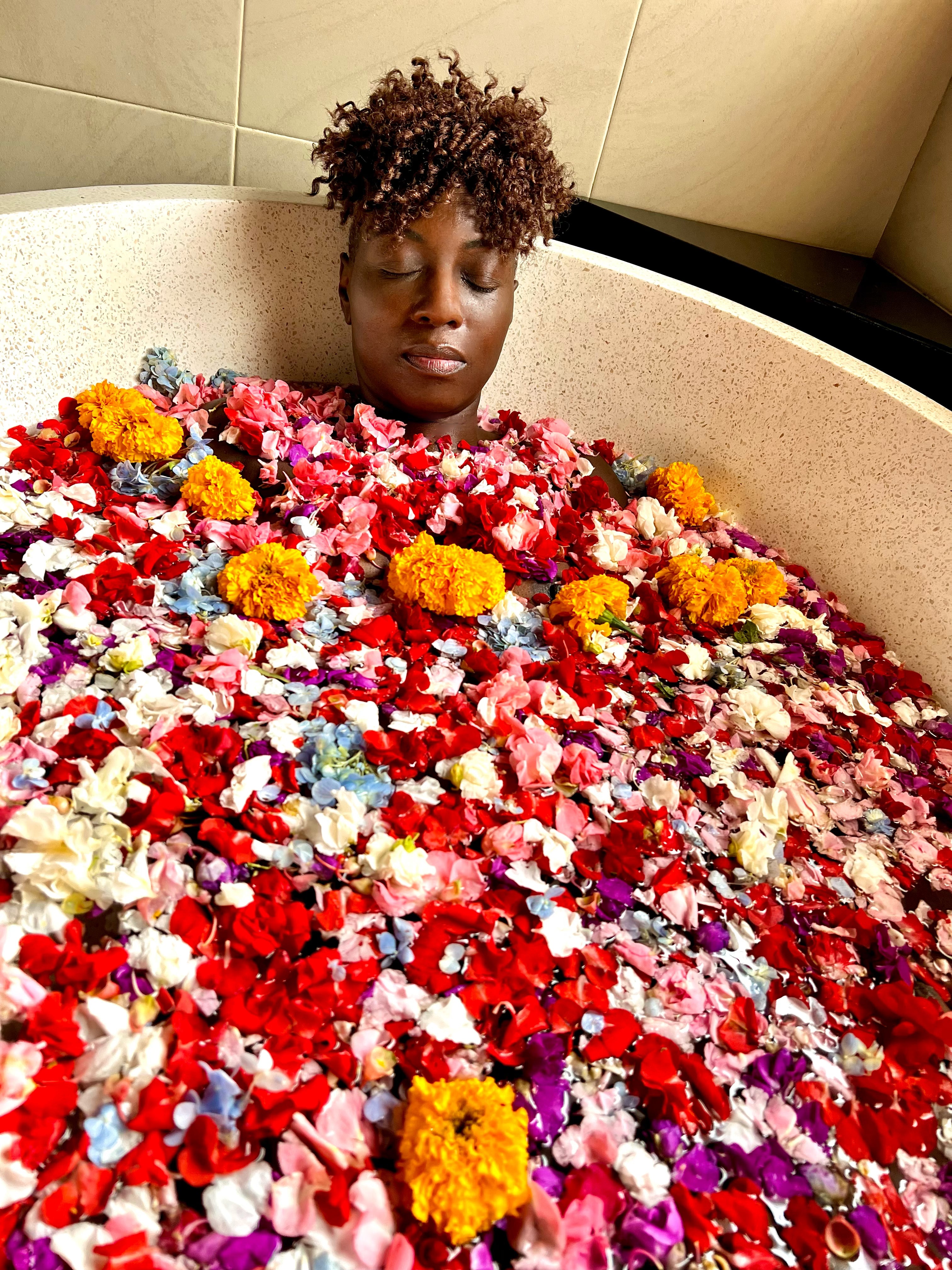 BOOK ME TO CAPTURE THE ICONIC ESSENCE bathing in a flower bathtub